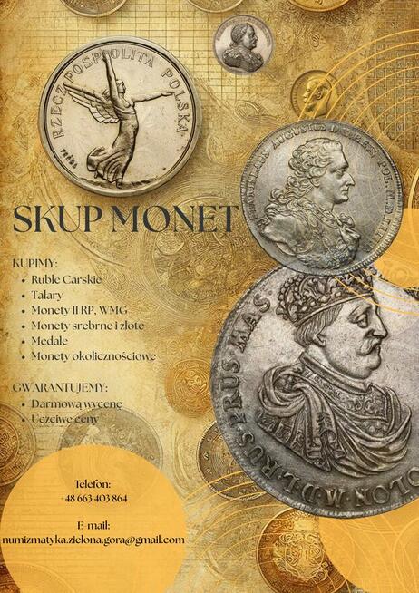 SKUP MONET I WALUT NIEBĘDĄCYCH W OBIEGU !! KUPIMY: 1. RUBLE CARSKIE (SREBRNE I ZŁOTE) 2. TALARY 3. MONETY IIRP, WMG, ...